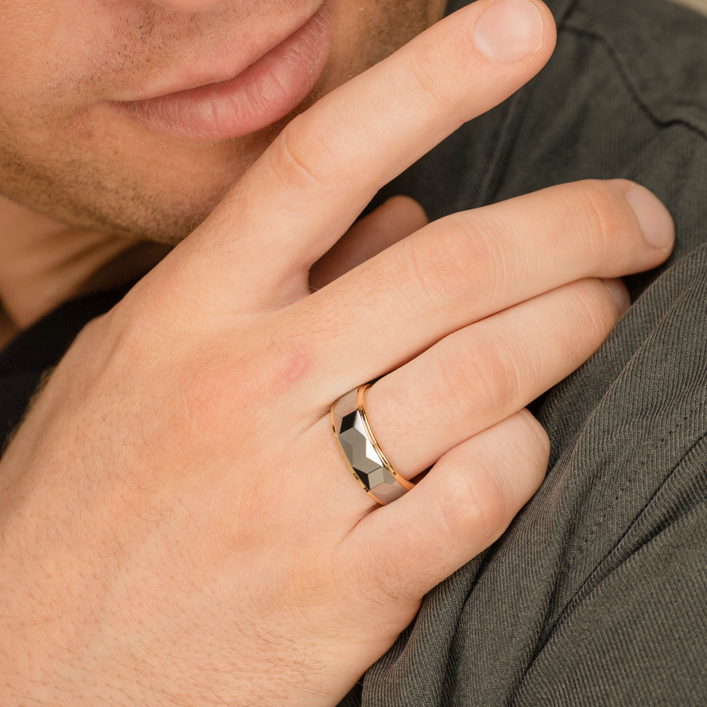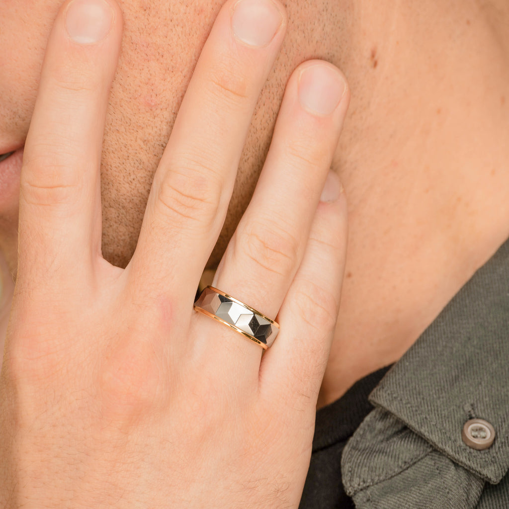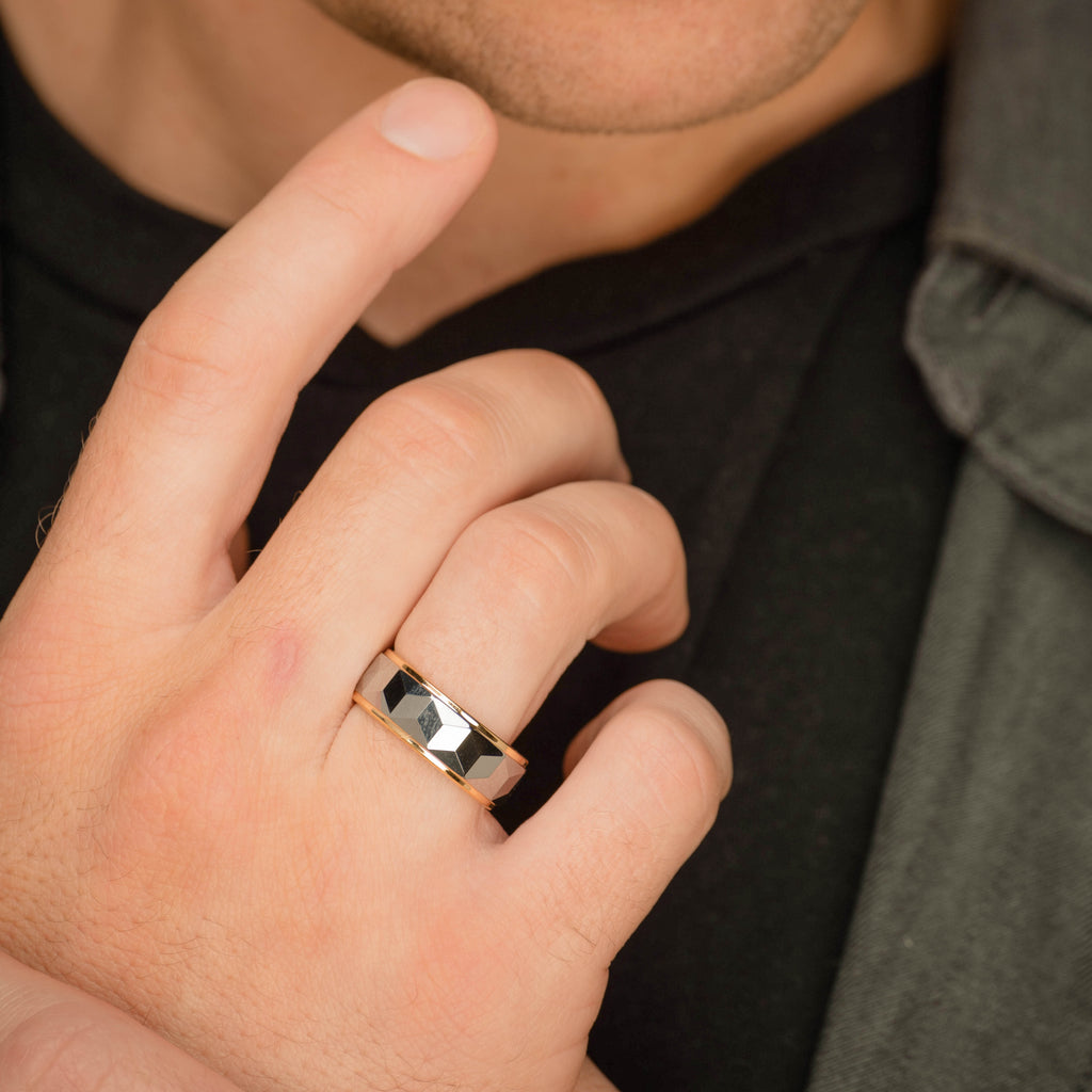 Chrome Beveled Geometric Tungsten Ring