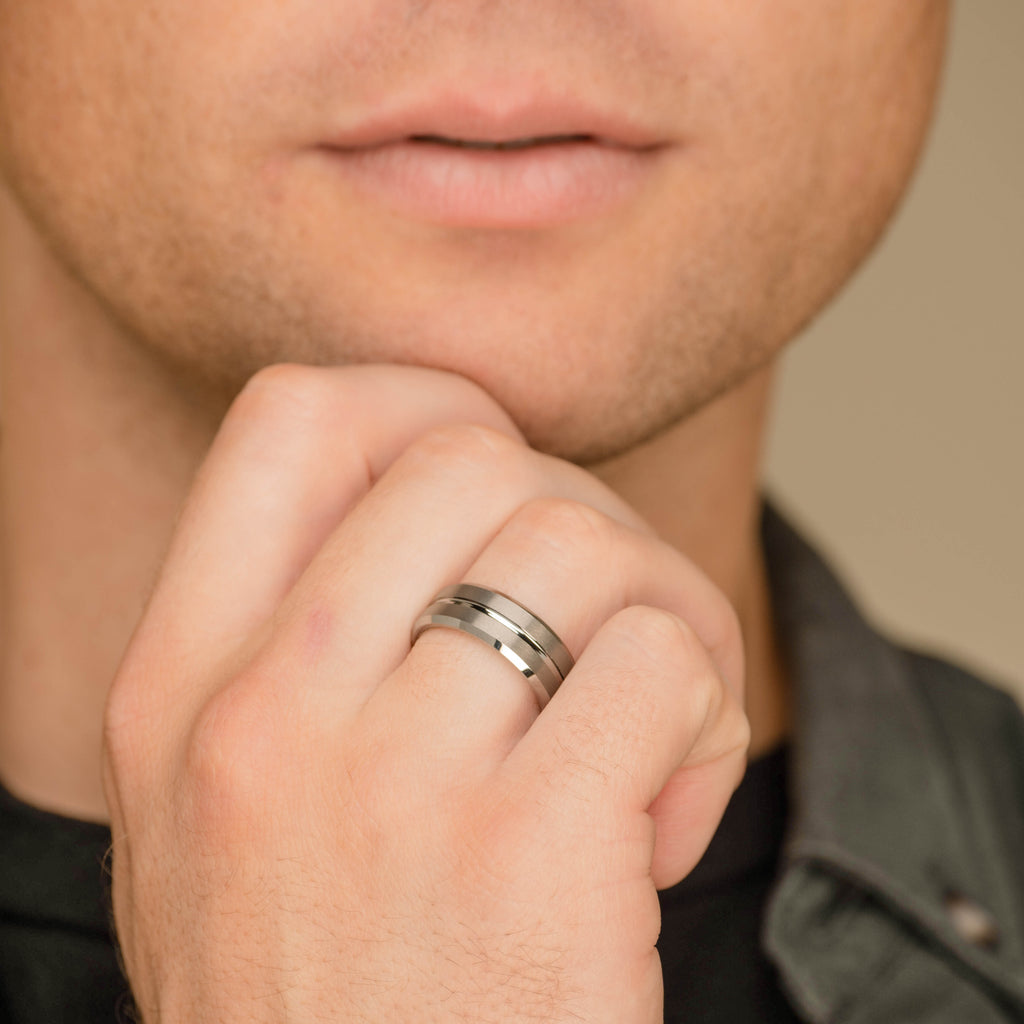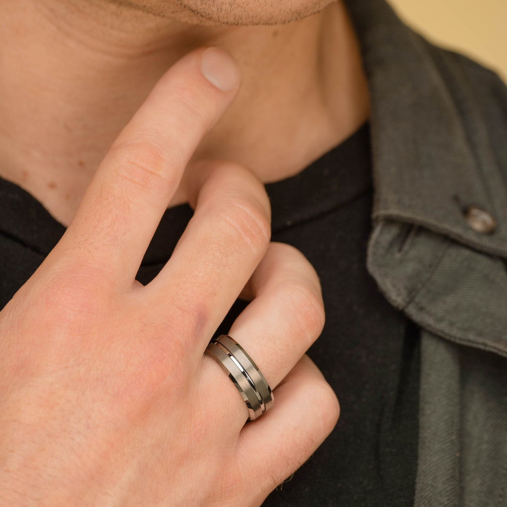 Double Channel Tungsten Ring Silver