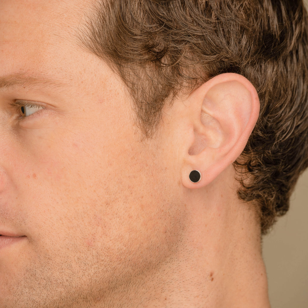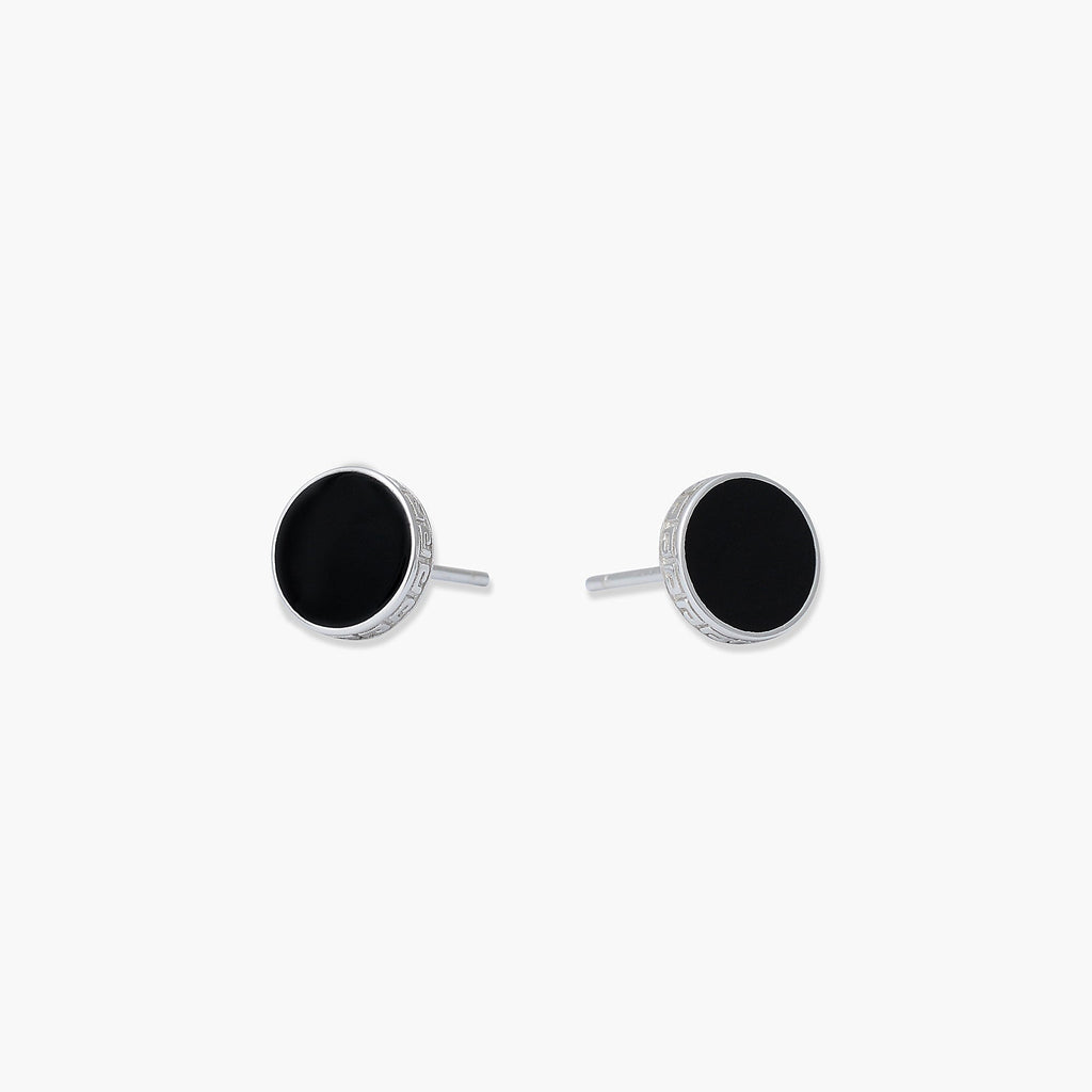 Circle Black Lacquered Greek Stud Earrings - Silver