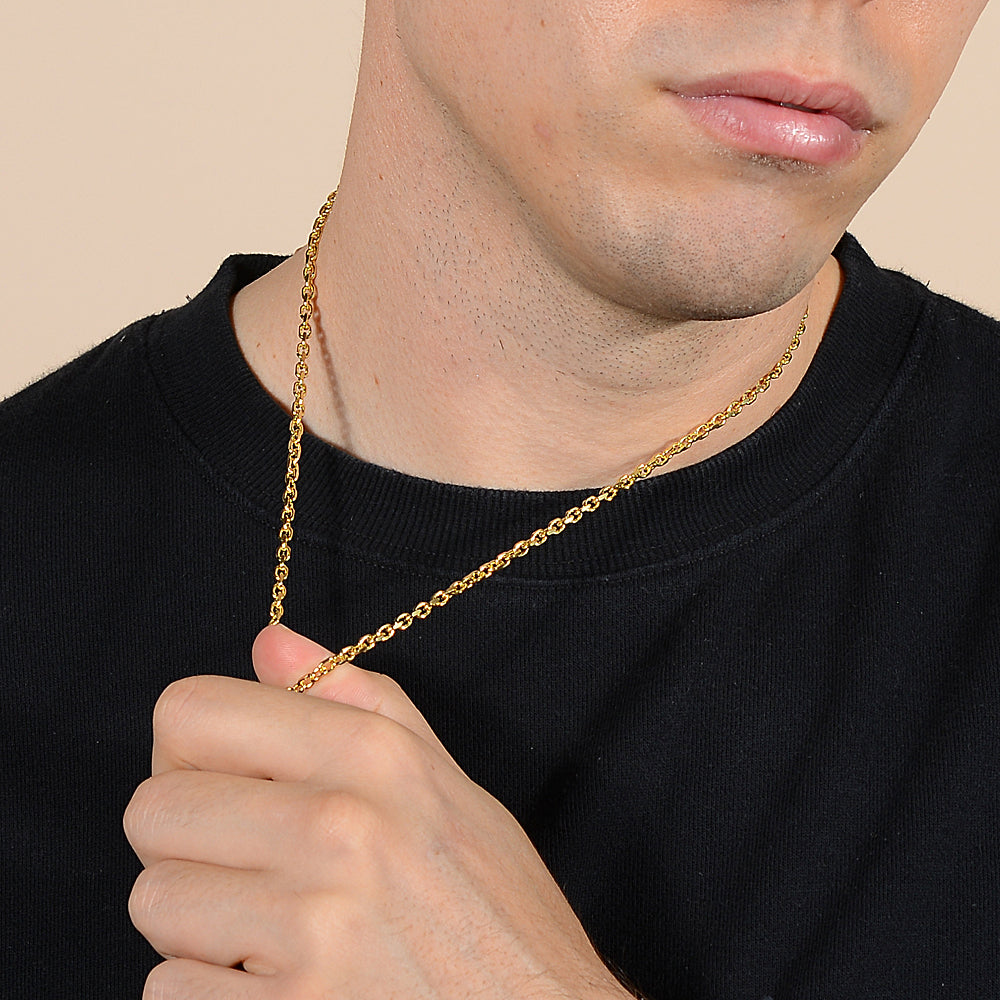The essential Cable Link Chain MEDICCI offers. The 3mm links have just enough gold for a subtle touch of luxury. Designed to be worn at the gym, during the day, or an evening out. Perfect for creating your own stack or pair with one of our pendants.