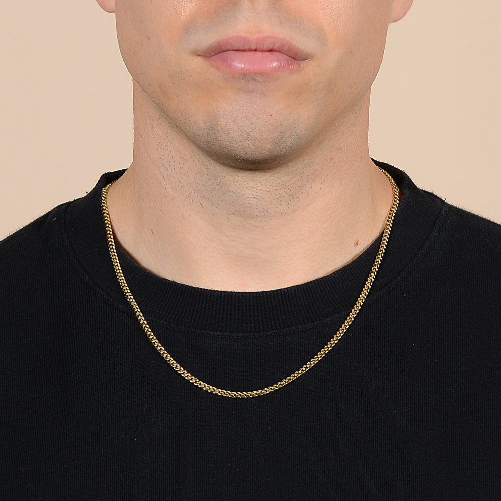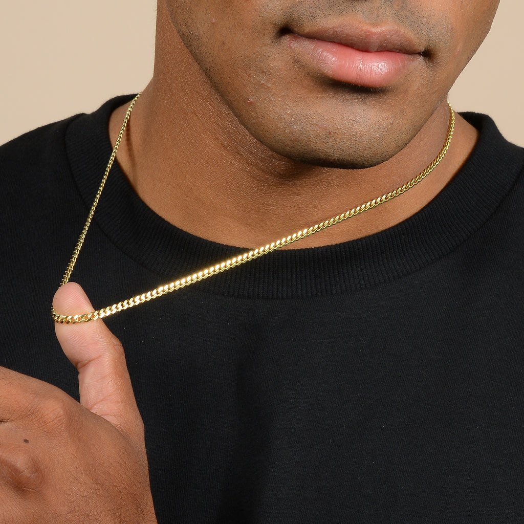 The essential Cuban Link Chain MEDICCI offers. The 3mm links have just enough gold for a subtle touch of luxury. Designed to be worn at the gym, during the day, or an evening out. Perfect for creating your own stack or pair with one of our pendants.