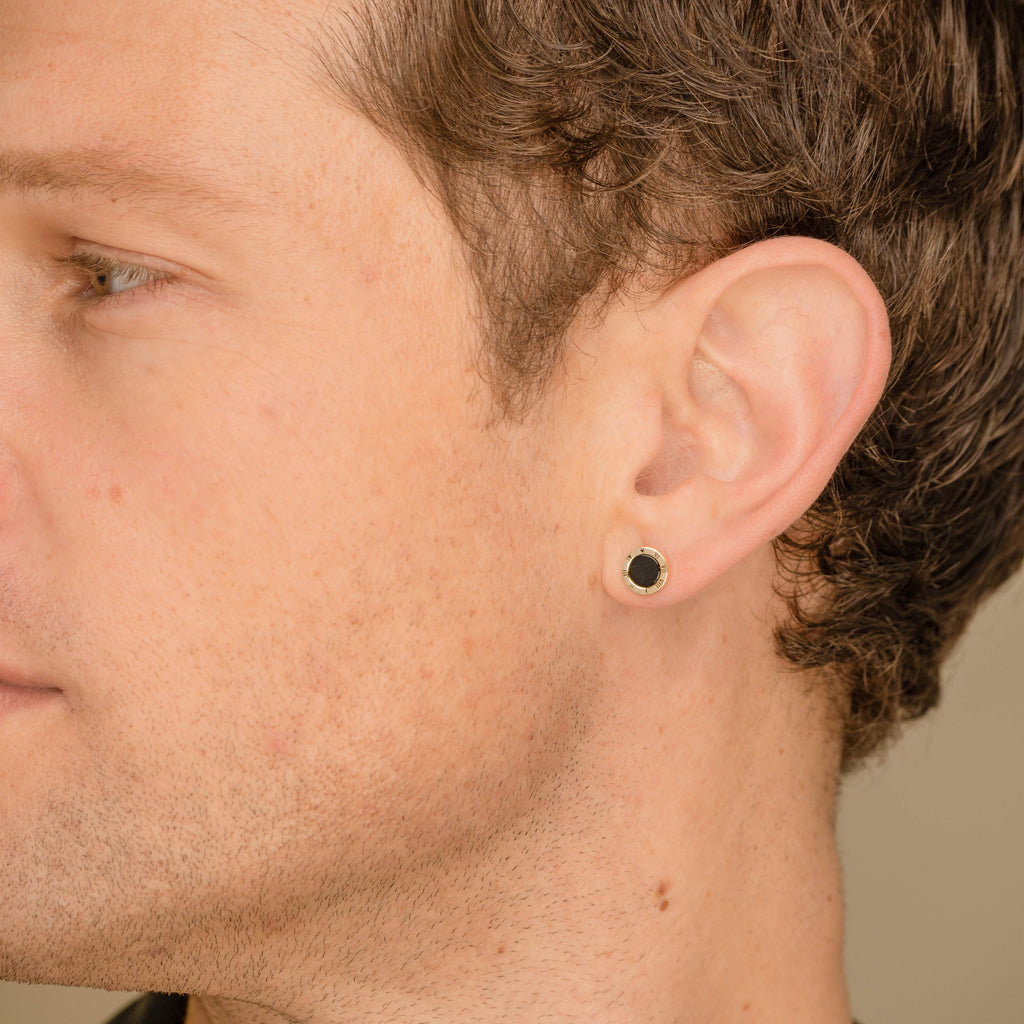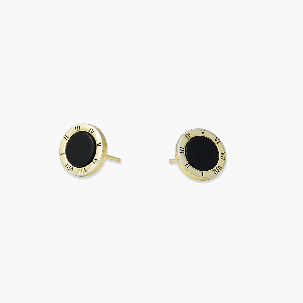 Roman Numeral Circle Black Lacquered Stud Earrings - Gold